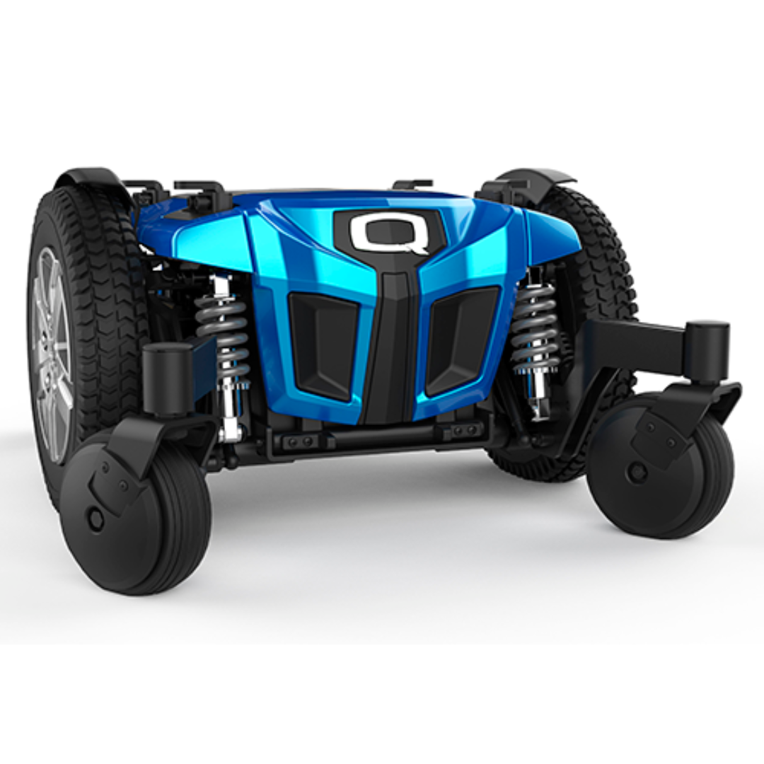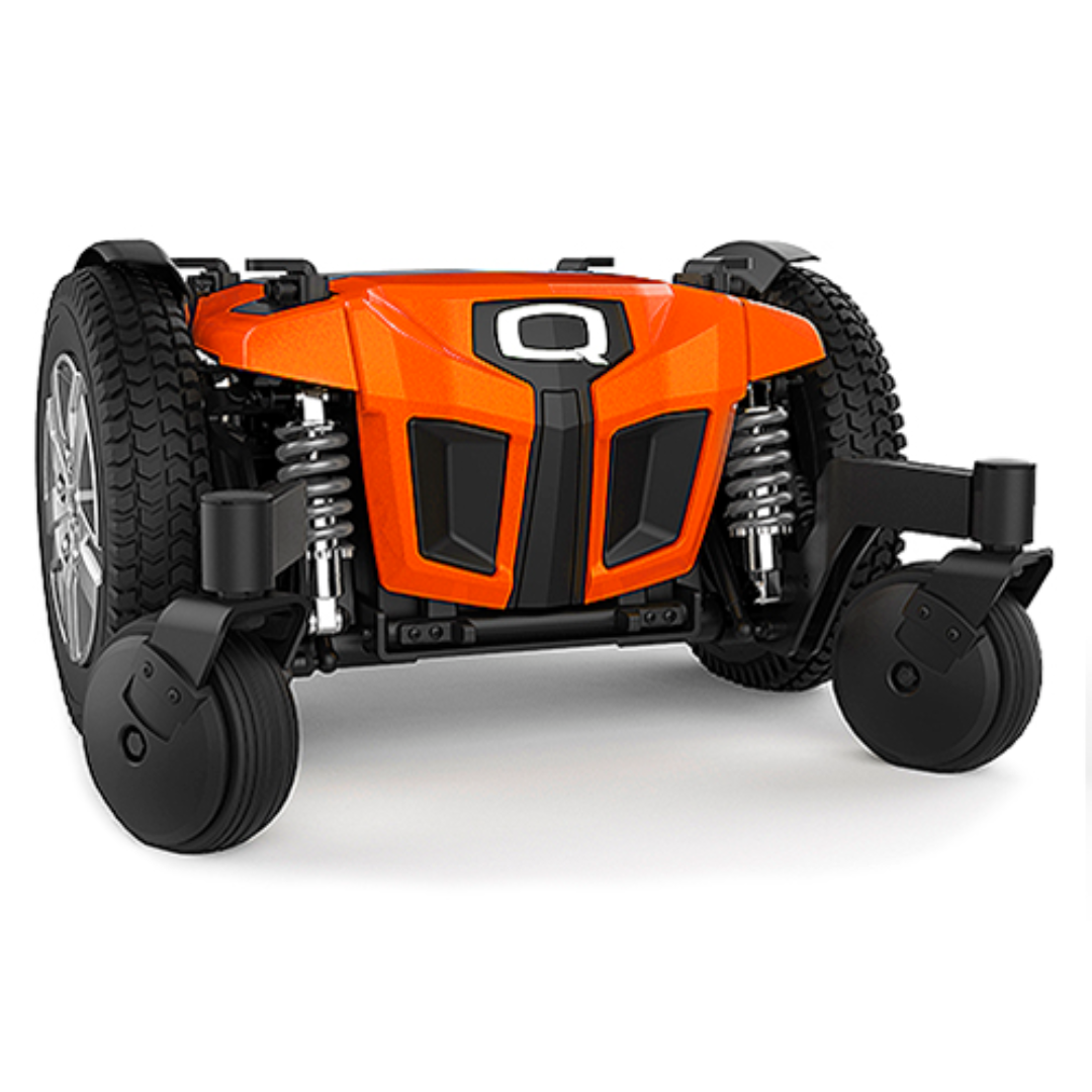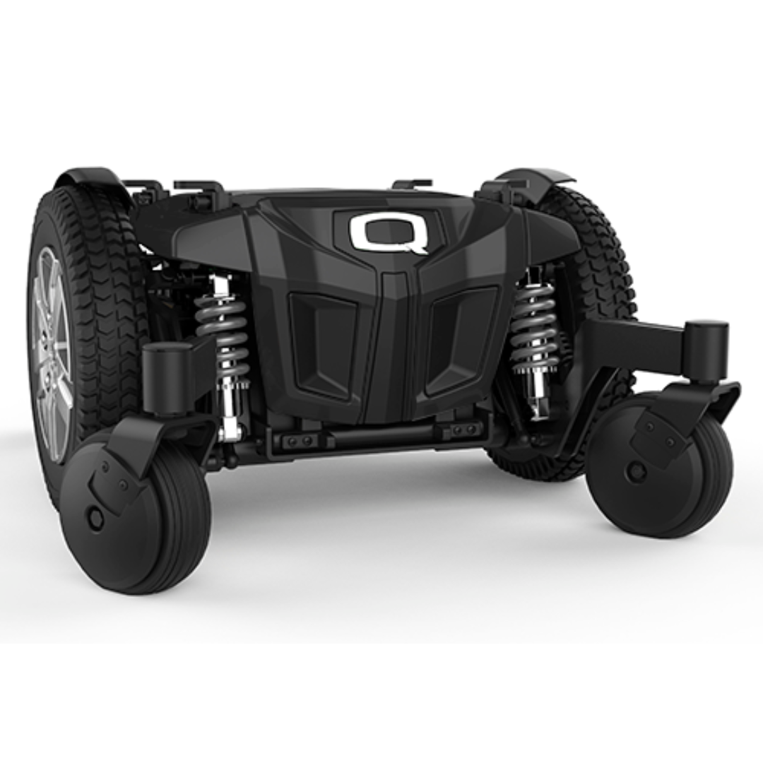 The ATX suspension system enables the greatest quality ride and enhances obstacle climbing using the 55Ah batteries, easily accessible through the front shroud, providing an extended range. One of the many optional extras for this chair is the Q-Logic 3 expandable controls which include Bluetooth.